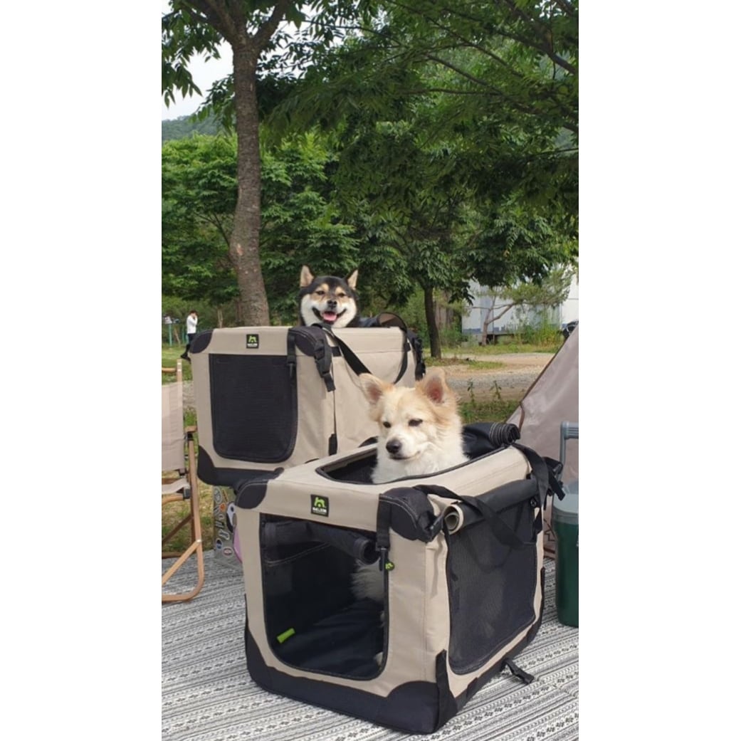 • 3 openingen- aan de voorkant, bovenkant en zijkant. De opening aan de zijkant zorgt ervoor dat u de kennel ook in een auto kunt plaatsen met een kleinere kofferbak.